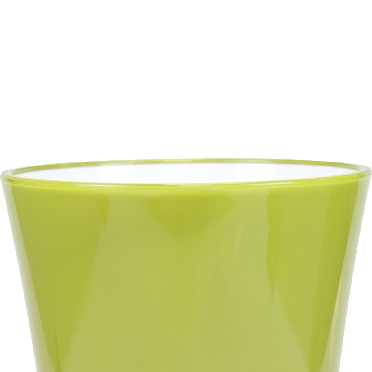 Lo strato interno è bianco e si estende fino al fondo, mentre lo strato esterno verde, leggermente trasparente, circonda completamente il vaso.
