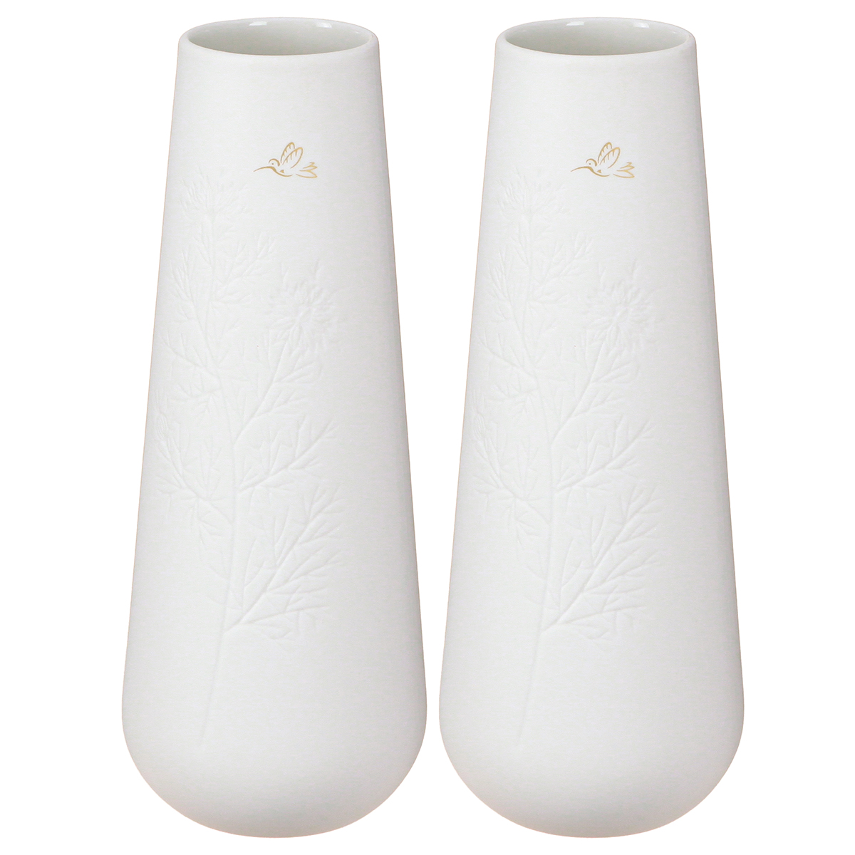 Vase en céramique blanche et dorée à décor d'oiseaux, Ø 6,5 cm H 19 cm, lot de 2