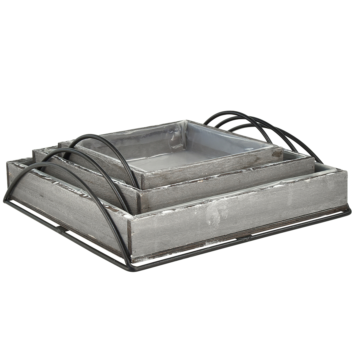 - Set di 3 vassoi in legno grigio di diverse dimensioni