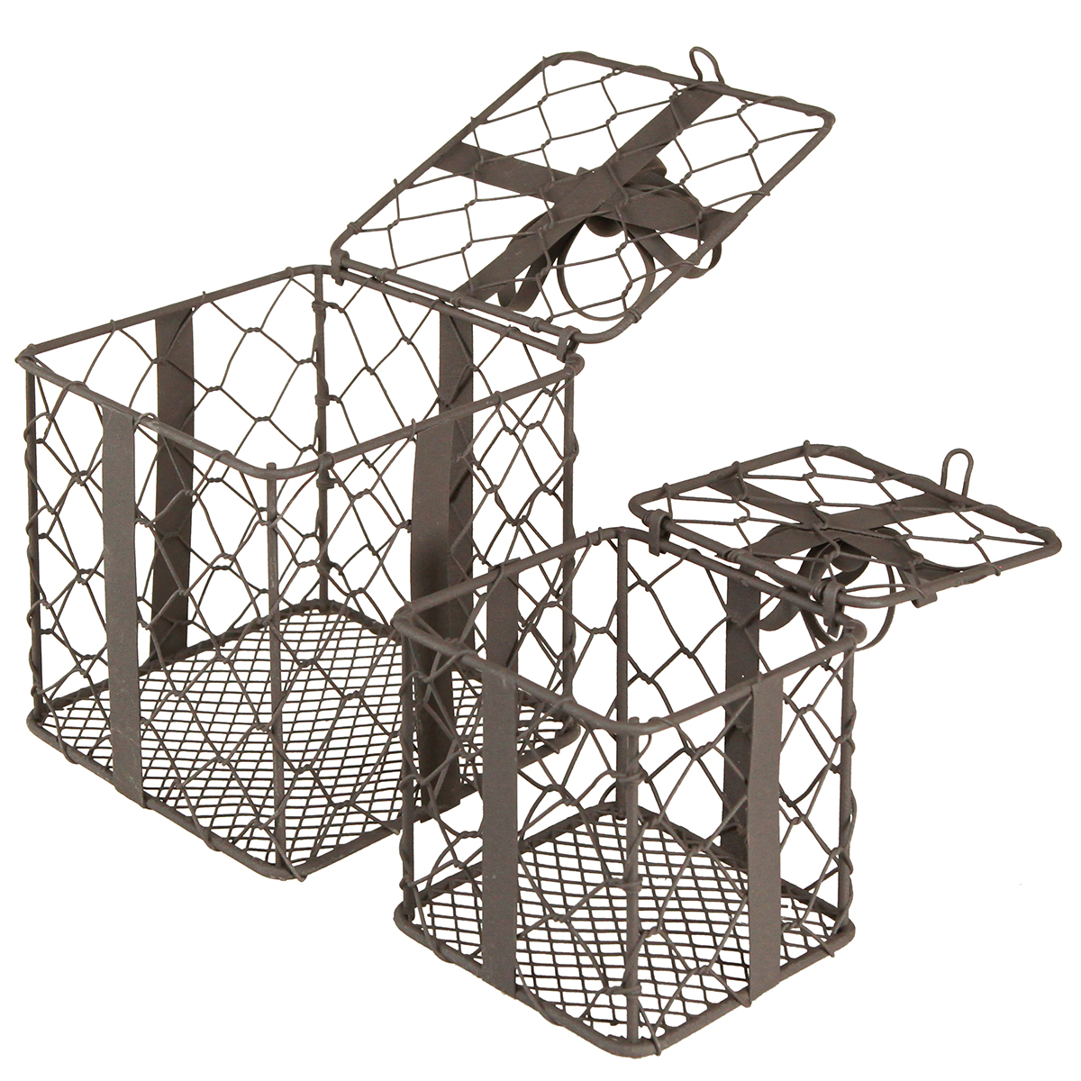 - Set di 2 cestini in filo metallico vintage di diverse dimensioni