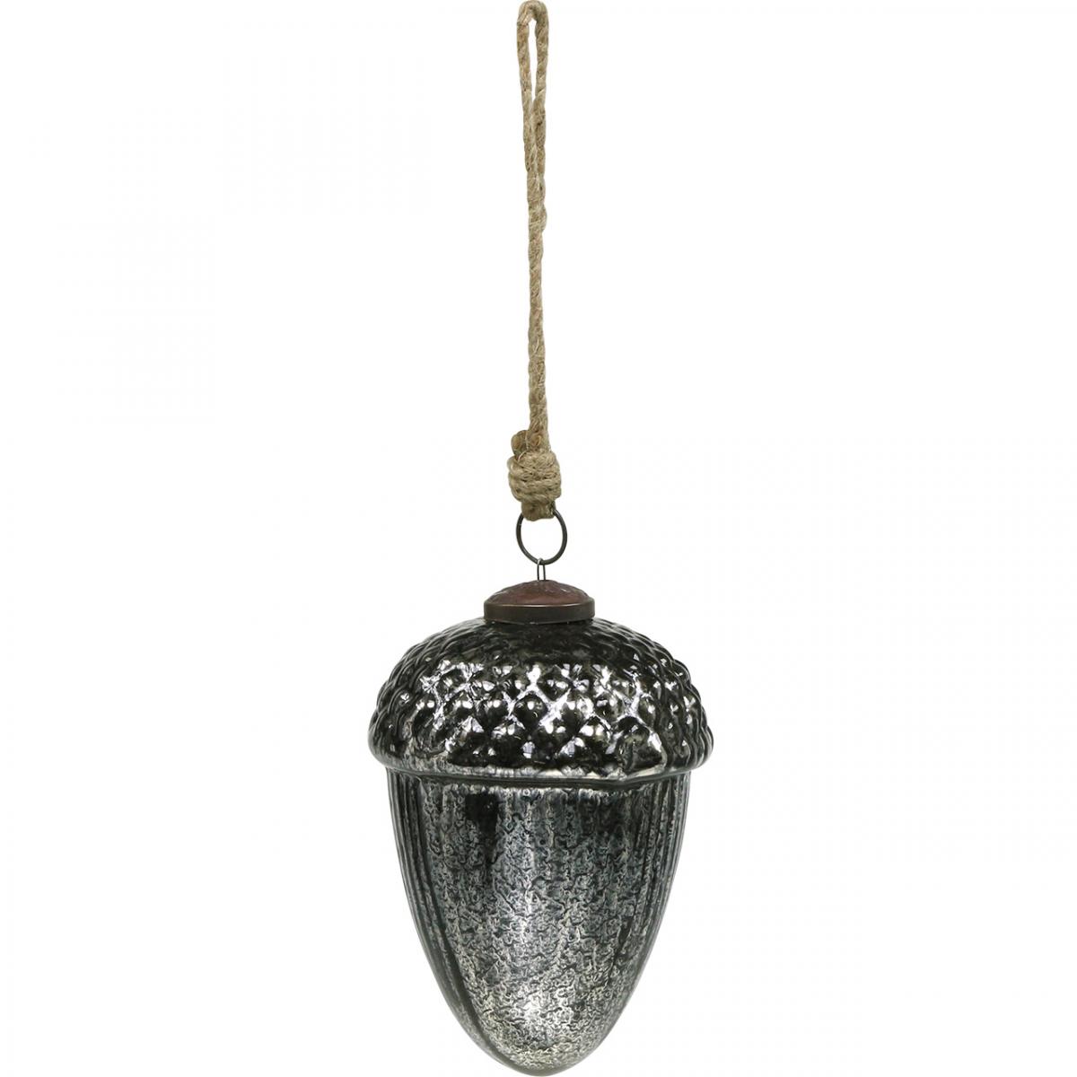 Ghianda in vetro argento Addobbo vintage 14cm Ø10cm 2pz