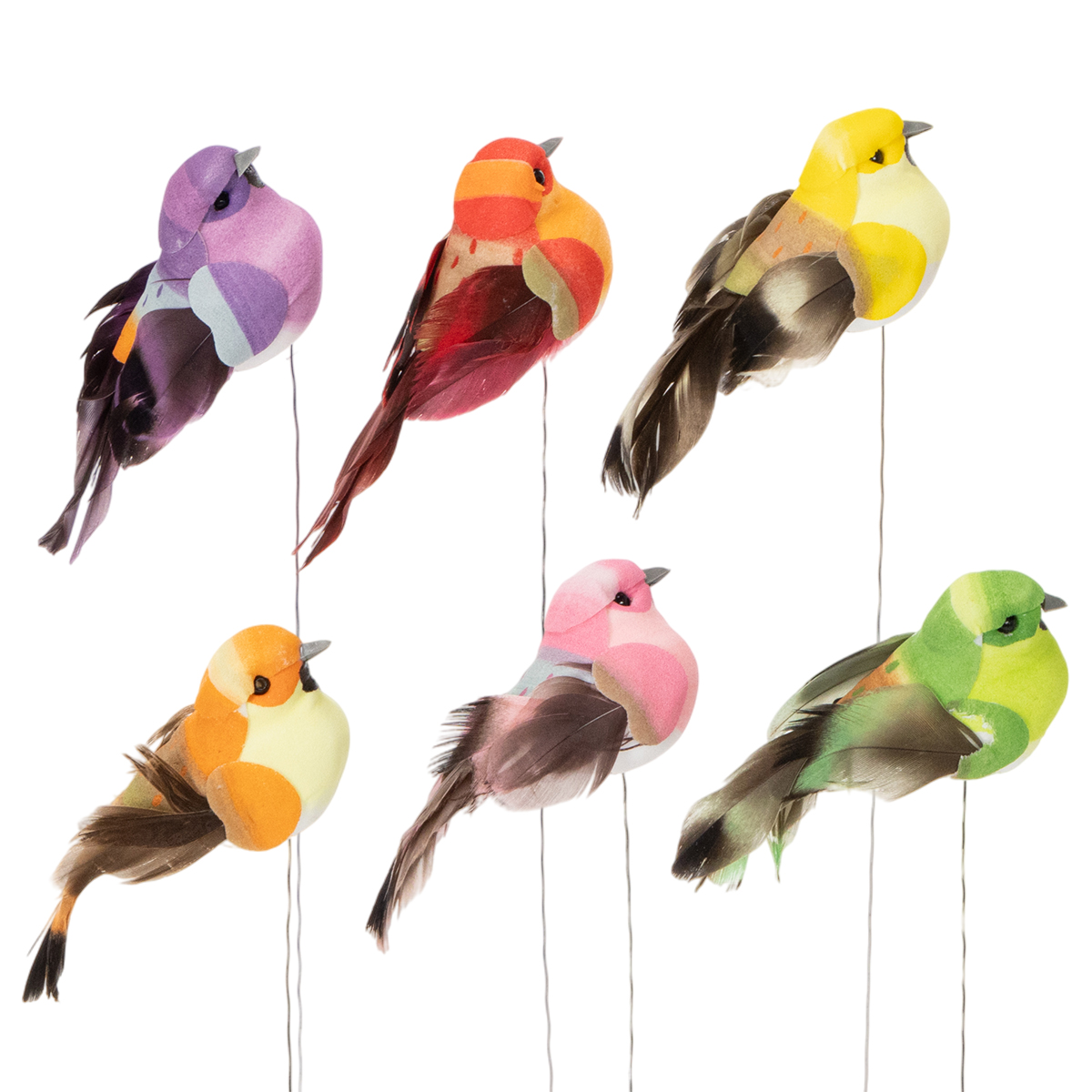 Produktname: Vogel künstlich mit Draht für Basteln Bunte Dekoration zu jeder Jahreszeit 8cm 12St