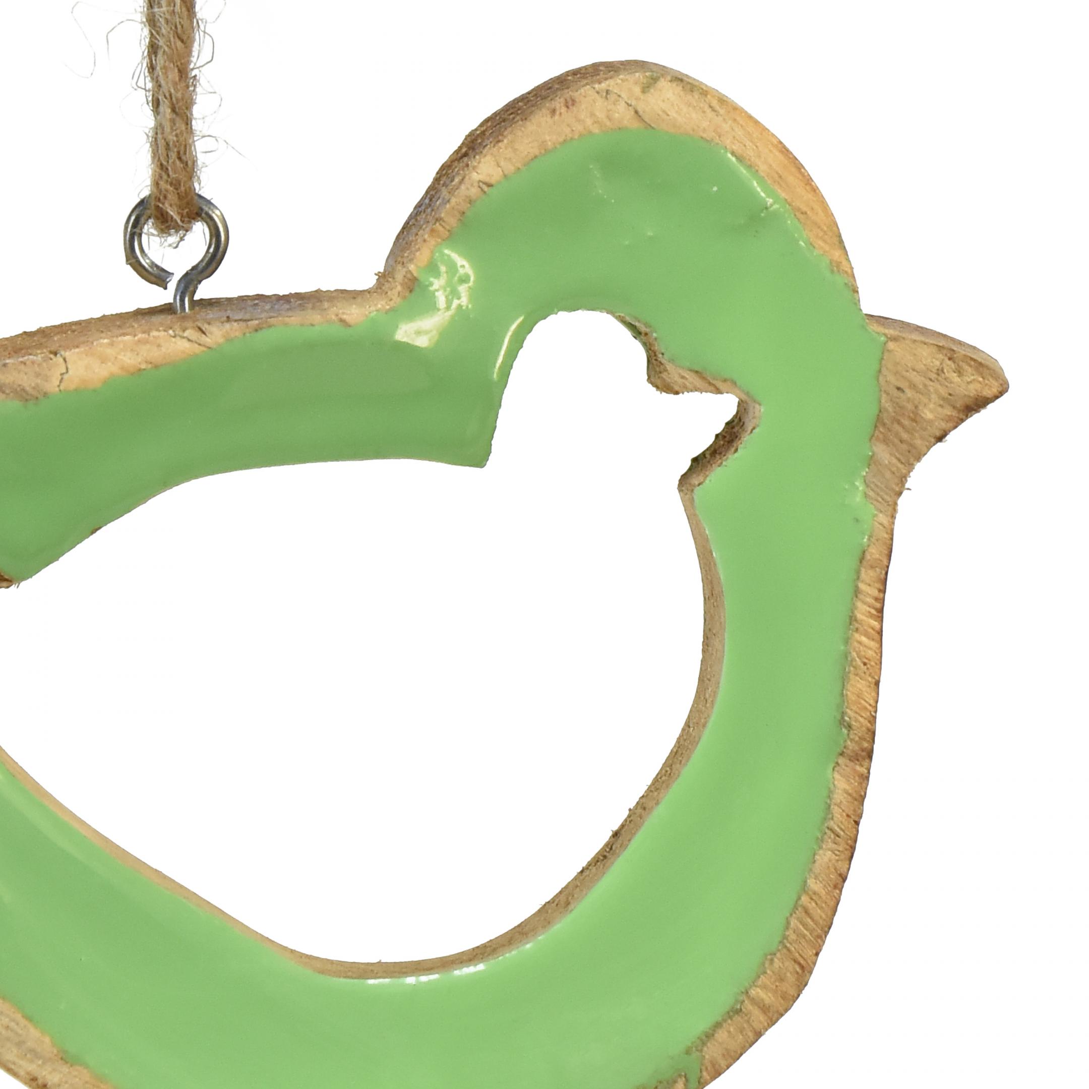 Appendino decorativo in legno decorazione uccello verde naturale 15,5x1,5x16 cm