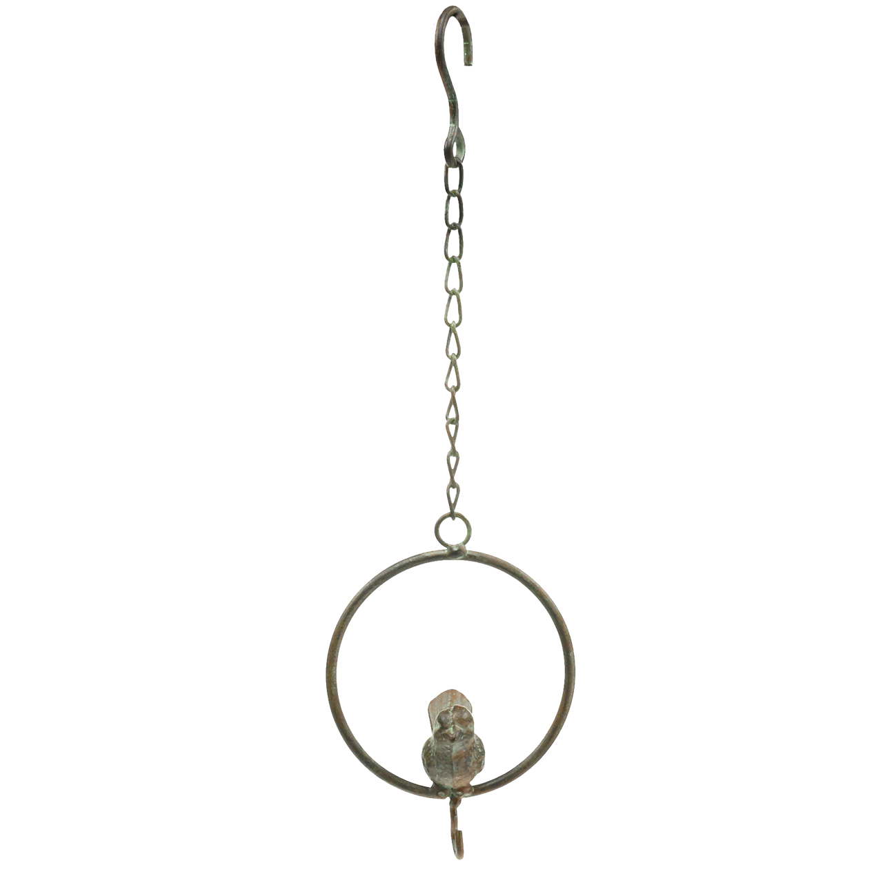 Oiseau dans un anneau en guise de suspension métal marron-vert Ø9.8cm L32.5cm