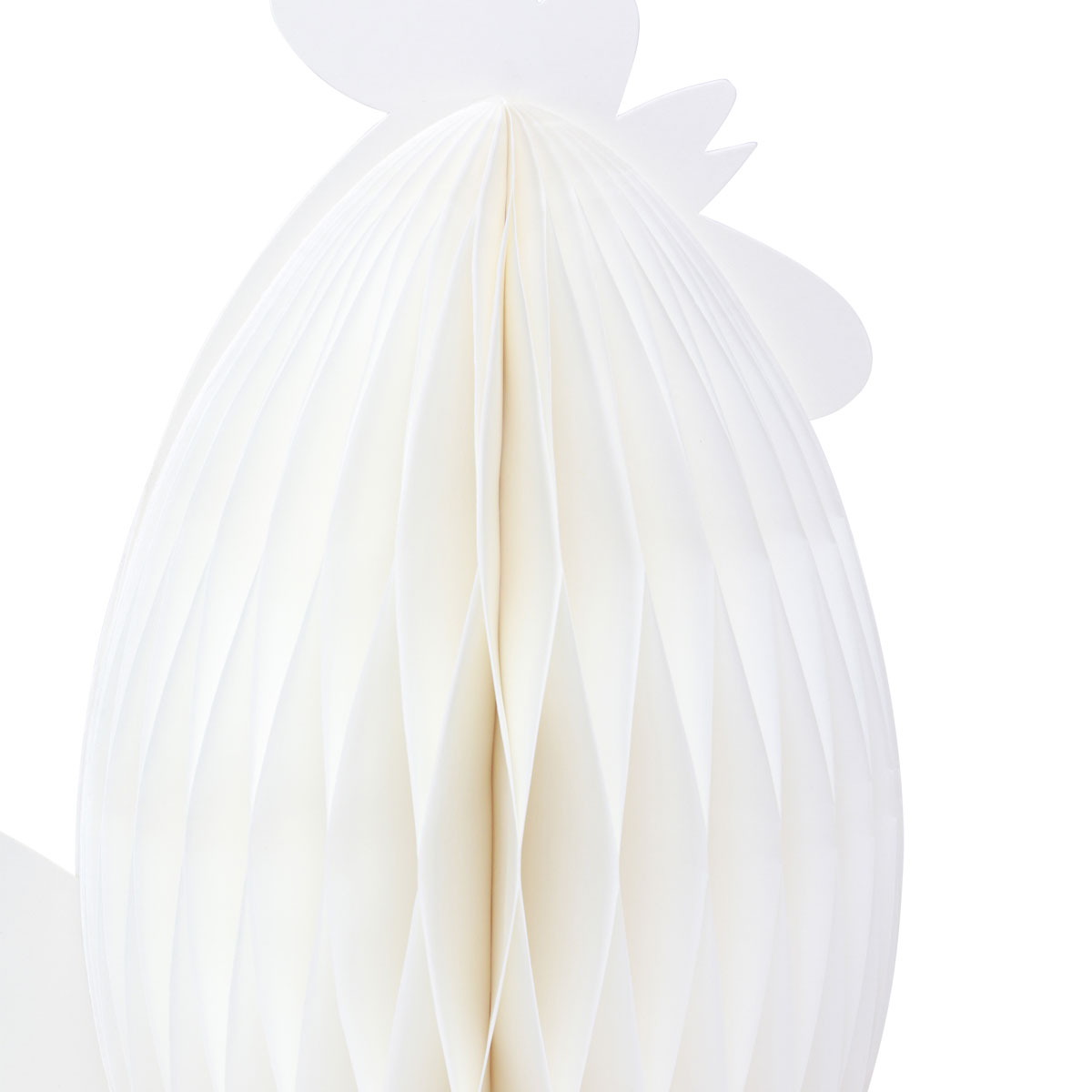 Le galline stanno stabili sul loro vestito di carta a nido d'ape. Realizzate in arancione e bianco, le divertenti figure decorative rallegrano le ciotole pasquali, i nidi pasquali e, naturalmente, la vostra tavola festiva.