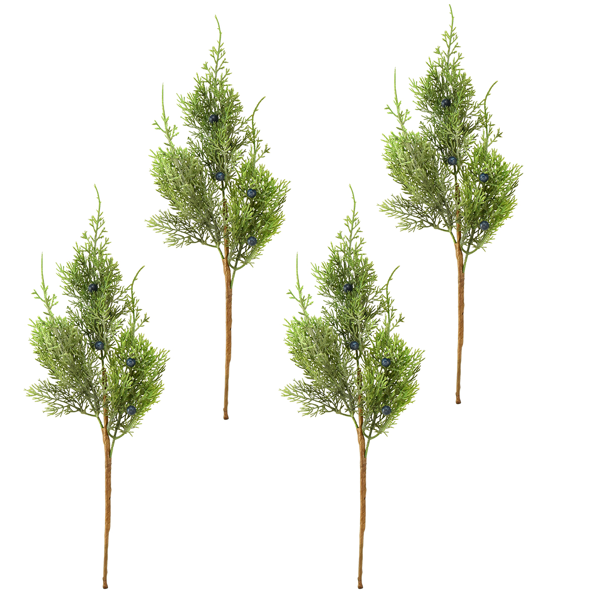 Branches de genévrier artificielles avec baies, vertes et bleues, 42 cm, lot de 4, décorations de Noël