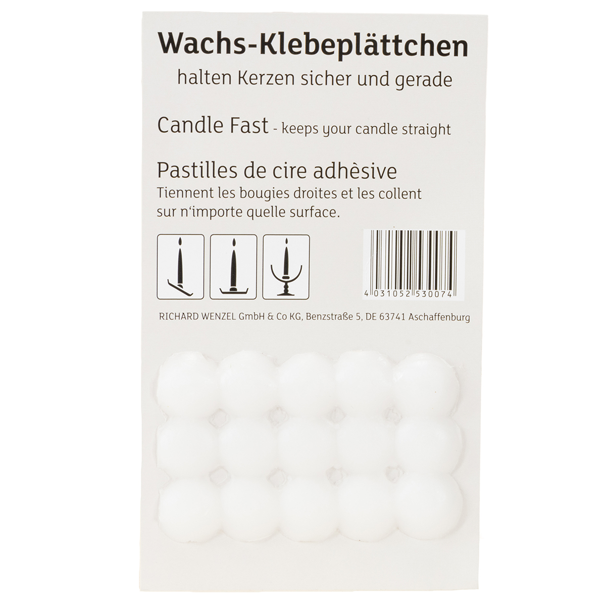 Produktname: Wachsklebeplättchen für Kerzen Klebeplättchen Weiß 15 St