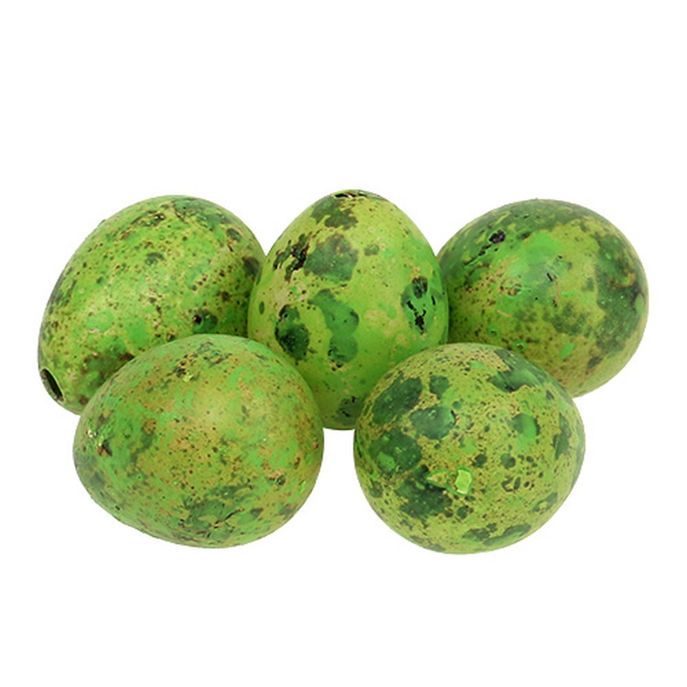 Le vere uova di quaglia in verde vengono fornite in una scatola per un totale di 50 pezzi e misurano tutte circa 3 centimetri. Ogni uovo ha un foro di uscita sul lato appuntito attraverso il quale il contenuto è stato lavato via.