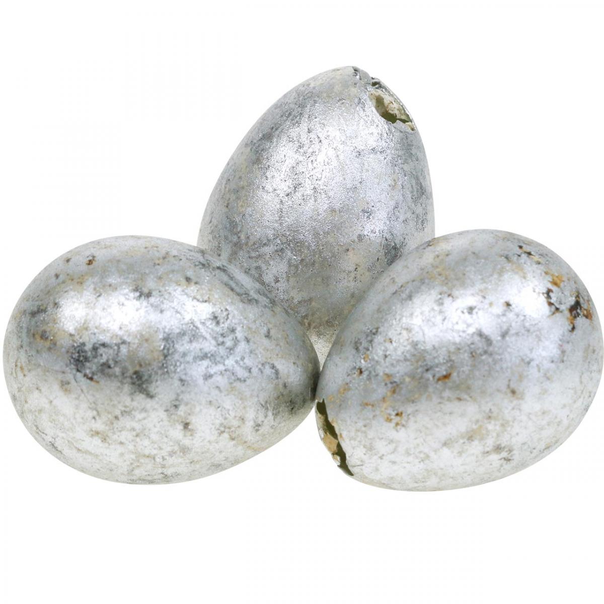 Produktname: Wachtelei Deko Silbern Leer 3cm Osterdeko 50St