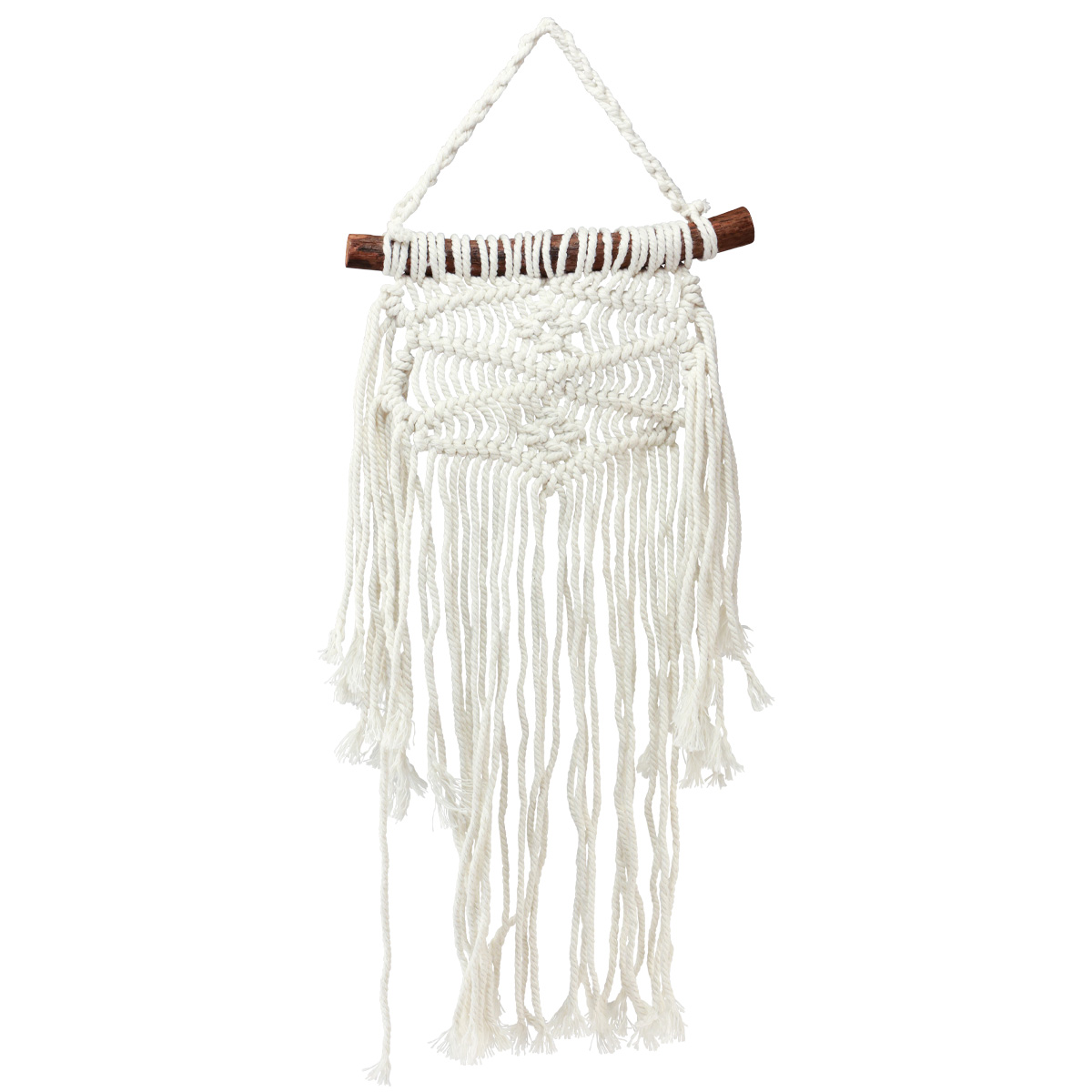 Décoration murale en macramé style bohème, couleur crème naturelle, 18,5 x 48 cm