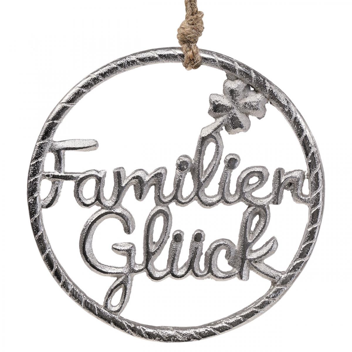Produktname: Metall Wanddeko Familienglück Dekoring mit Schriftzug und Kordel