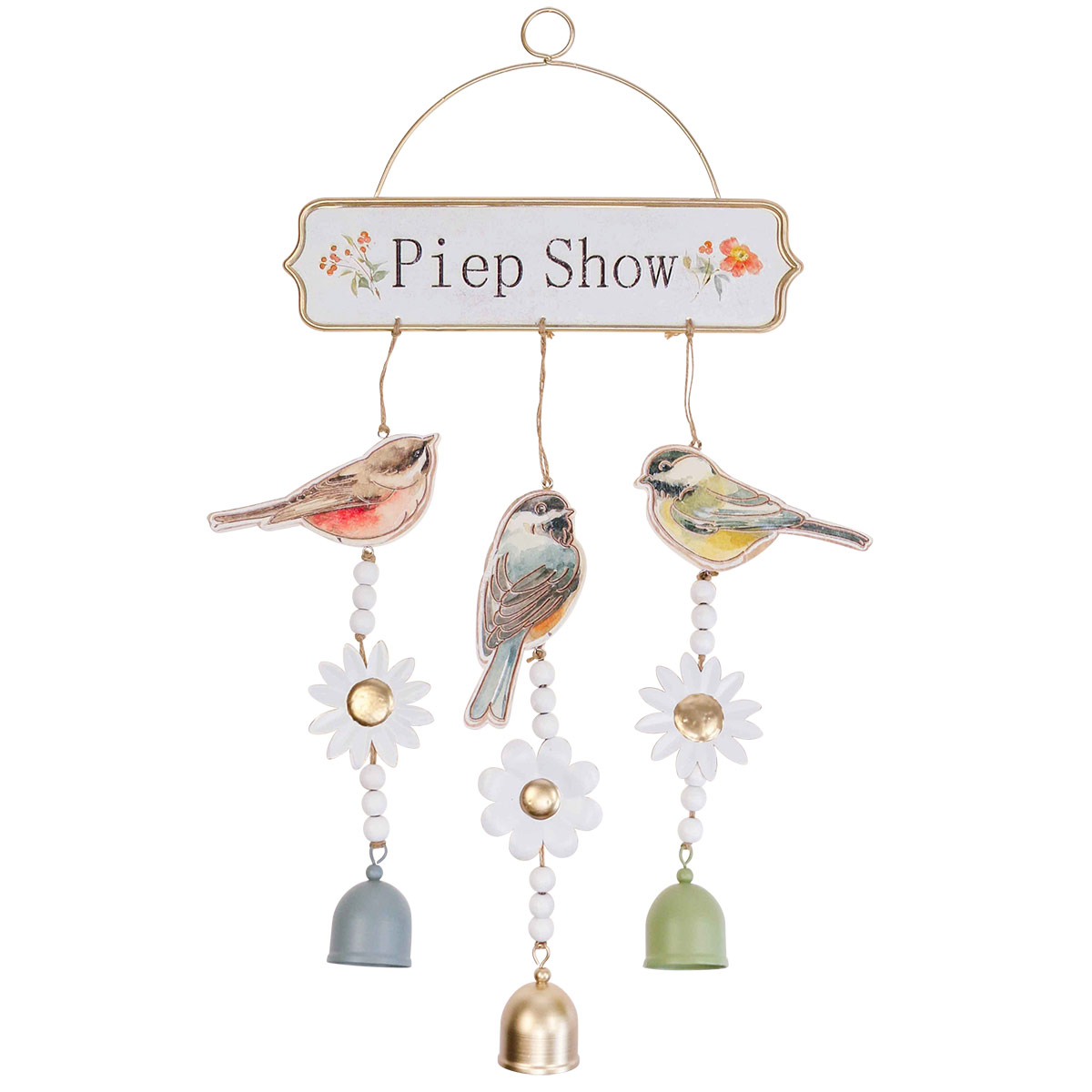 Produktname: Vogelmotiv Wanddeko mit Glocken und Blumen für Frühling und Sommer