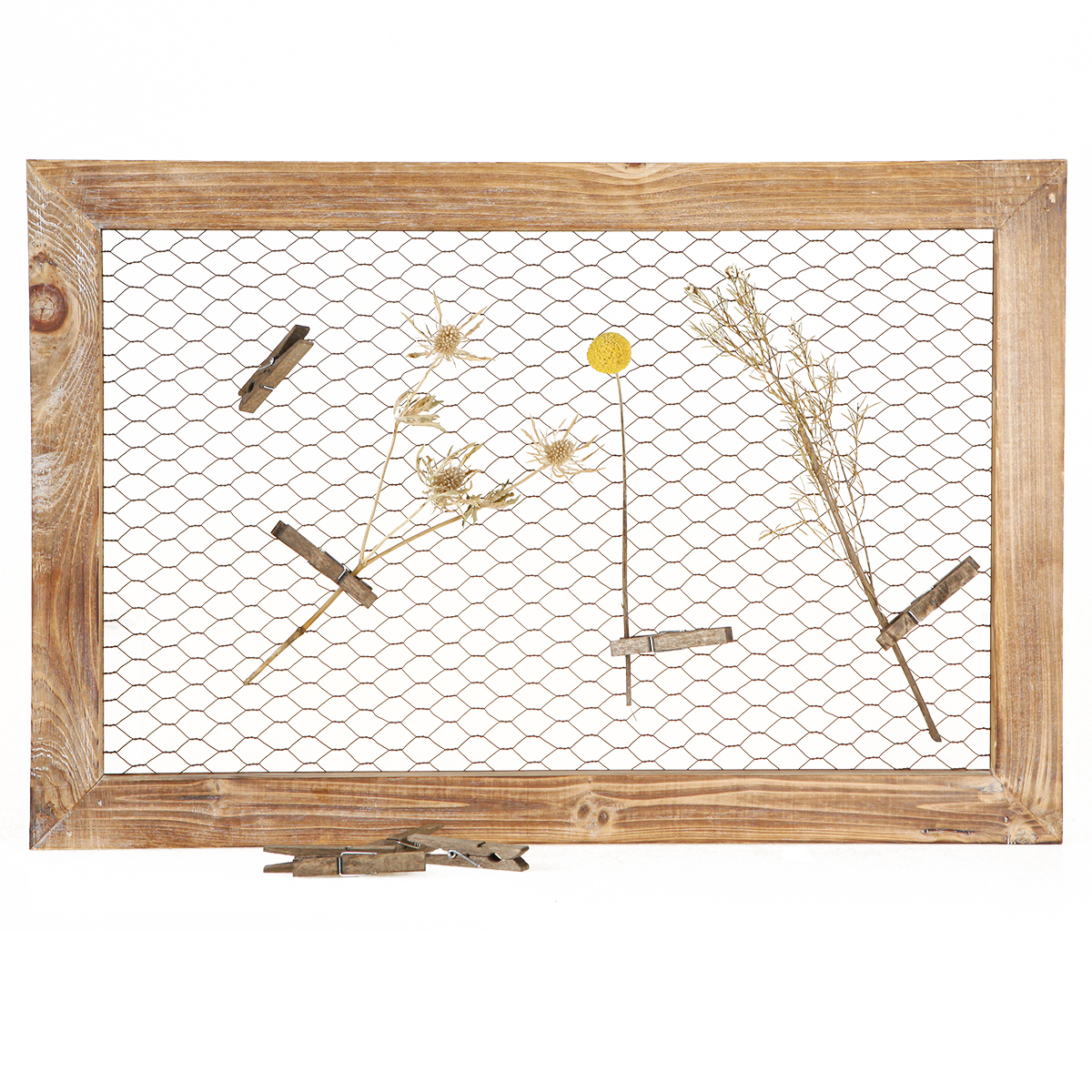 Verleihen Sie Ihrem Zuhause ein warmes und einladendes Flair mit unserer rustikalen Wanddeko aus Holz und Metall. Diese eindrucksvolle Wandkunst, in einem klassischen Braunton gehalten und mit einem Maß von ca. 40x60cm, ist die perfekte Ergänzung für jedes Zimmer. Gefertigt aus einem lasierten Holzrahmen und einem Maschendraht, bietet diese Wanddeko ein originelles Design. Die acht Klammern in Braun erlauben vielseitige Anwendungen – ob als kreative Notiztafel, inspirierende Fotowand oder als einzigartiger Rahmen für Hängepflanzen. Diese Wanddekoration vereint natürliche Materialien mit einem robusten, industriellen Stil und verleiht Ihrem Wohnbereich einen rustikalen Akzent. Ideal geeignet für Wohnzimmer oder Büro – erleben Sie die harmonische Symbiose aus Holz- und Metalldeko, die sowohl Eleganz als auch Langlebigkeit ausstrahlt. Stöbern Sie durch unser Angebot bei Floristik24 und entdecken Sie passende Dekorationsideen, die sich perfekt mit dieser Wanddeko kombinieren lassen.