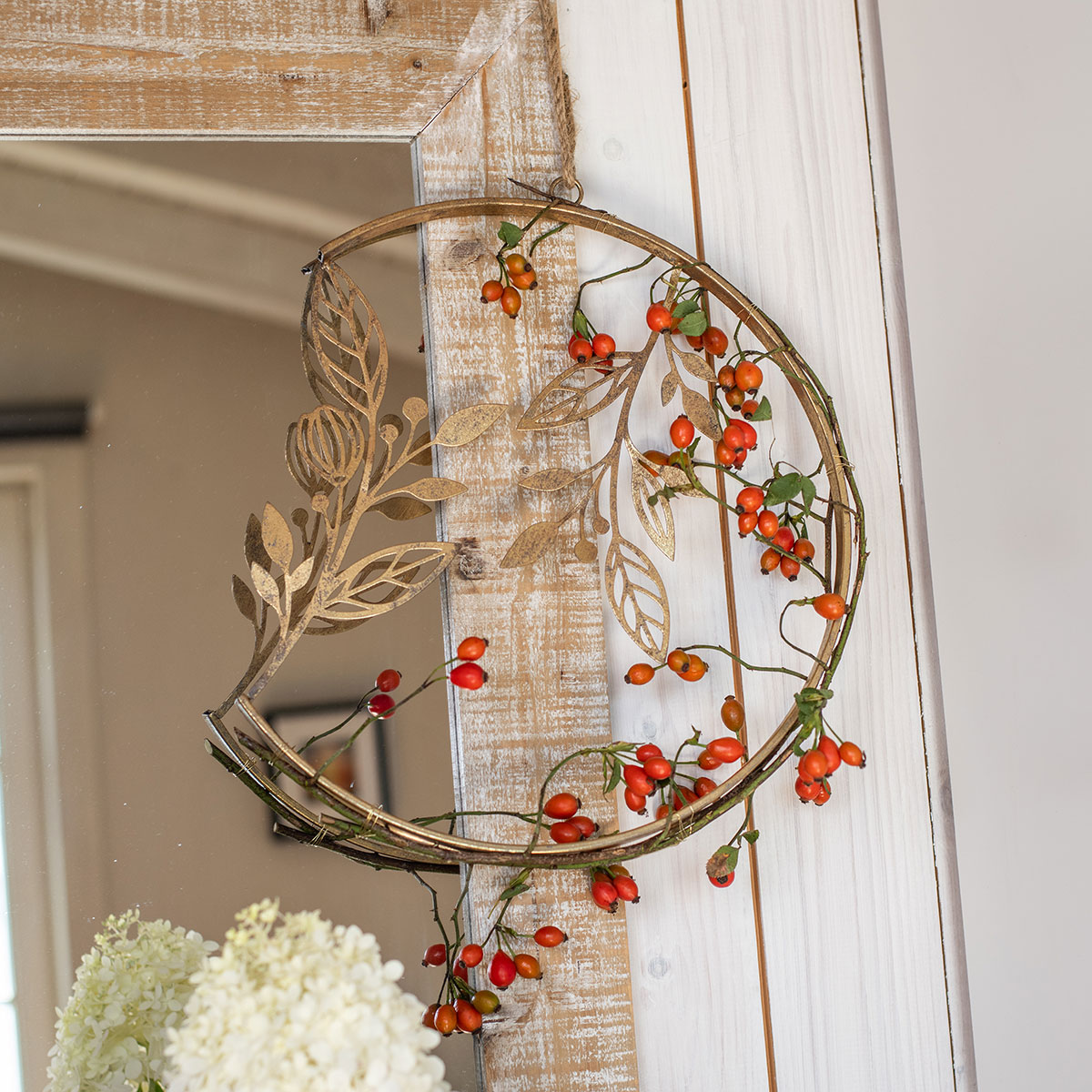 Produktname: Wanddeko Metall Deko hängend Gold Ø38cm Zweige Antik Sommer Charme