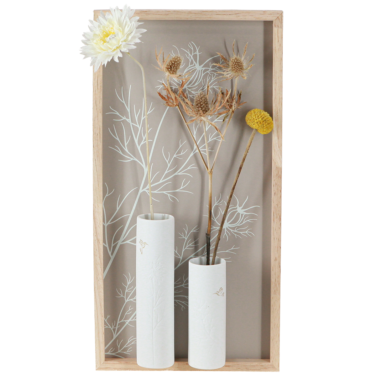 Holz Wandbild Deko mit Keramik Vasen H35cm Landhausstil