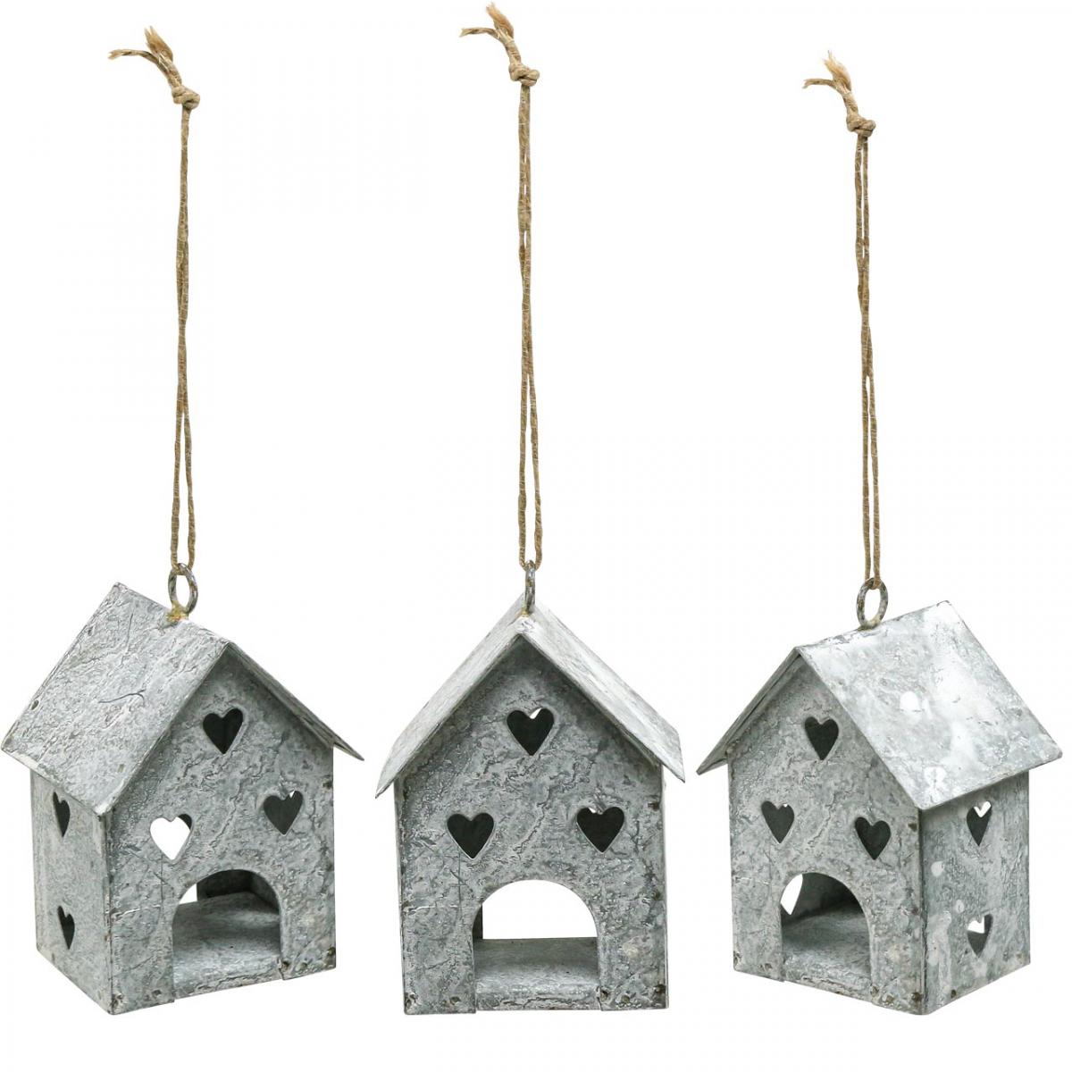 Casetta in metallo Shabby Chic Addobbi natalizie 9,5cm 3pz