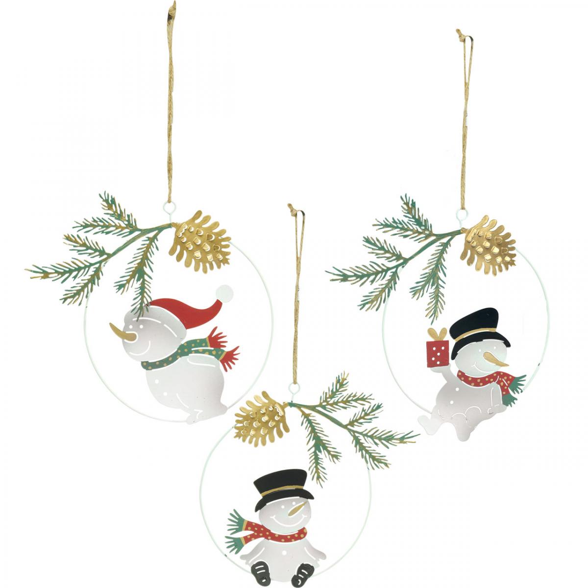 Pendentif de Noël bonhomme de neige décoration anneau métal Ø14cm 3pcs