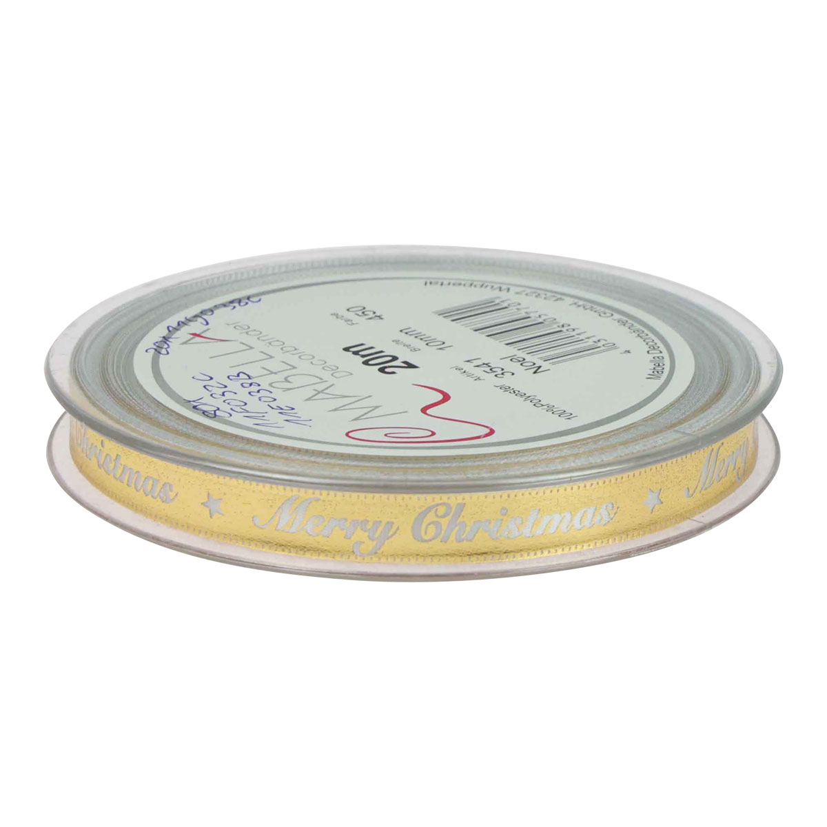 Produktname: Weihnachtsband Merry Christmas Band Weiß Gold 10mm 20m