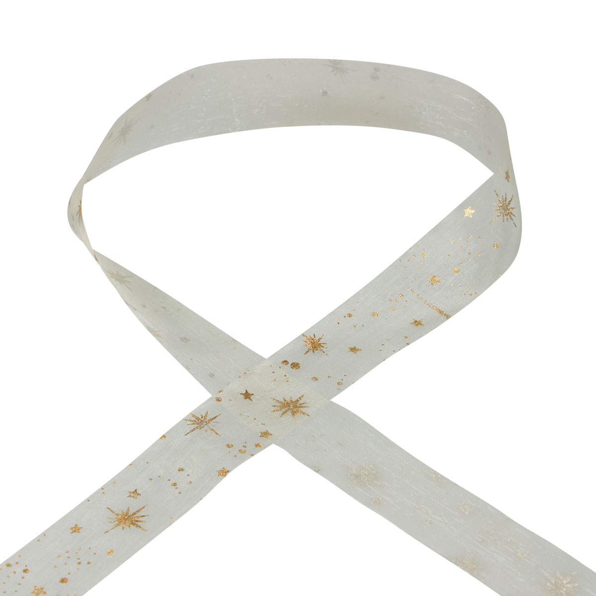 Ruban Noël, ruban organza motif étoile blanc 25mm 25m