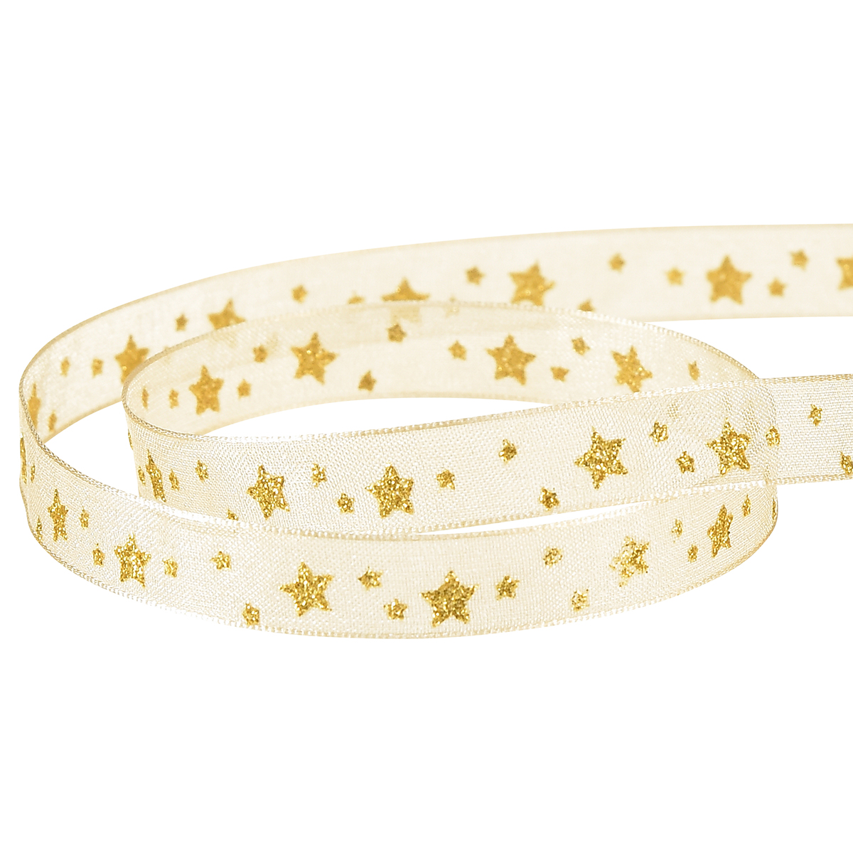 Organzaband Weihnachtsband Sterne Beige Gold B10mm L20m
