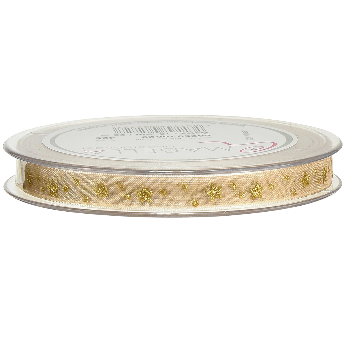 Ruban Organza Ruban Noël étoiles beige doré L10mm L20m