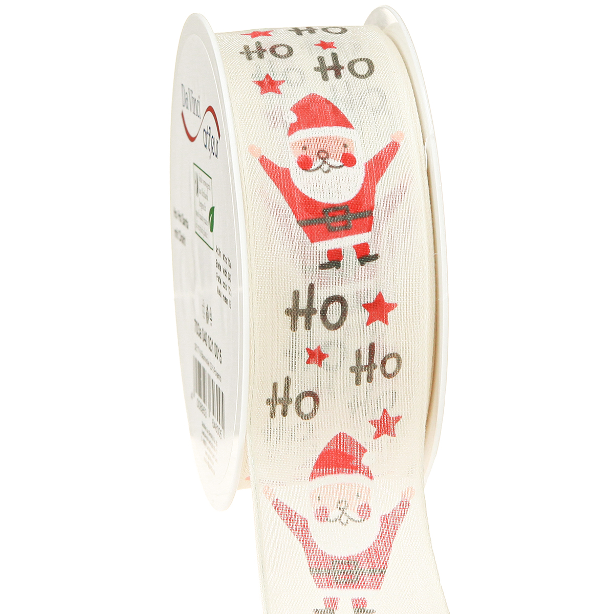 Produktname: Weihnachtsband mit Santa Baumwollband Creme 40mm 15m