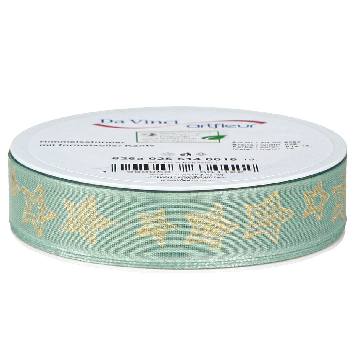 Weihnachtsband Sterne Geschenkband Türkis 25mm 18m