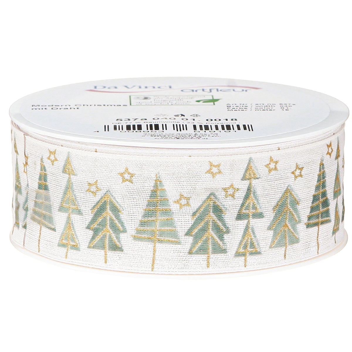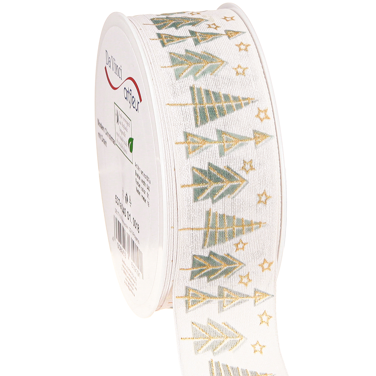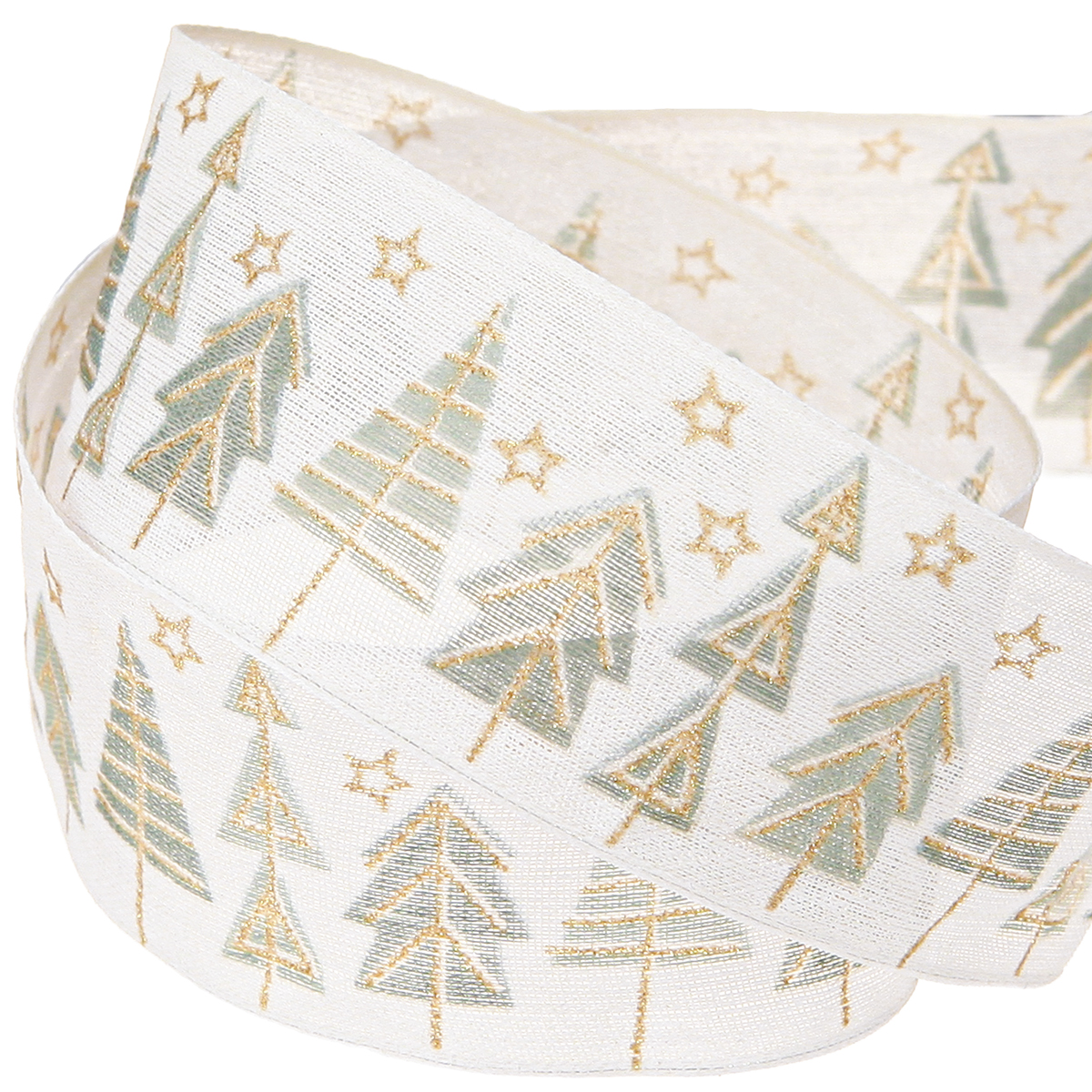 Weihnachtsband Tannen Geschenkband Weiß Gold 40mm 18m