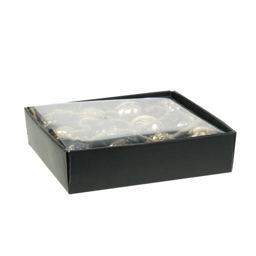 Jede der zwölf Kugeln in Gold hat einen Durchmesser von ungefähr 5,5 Zentimetern und die Girlande weist eine Gesamtlänge von circa 120 Zentimetern auf.
