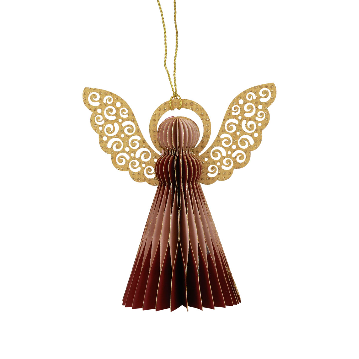 Décoration ange de Noël en papier rouge vin rose H12cm 4pcs
