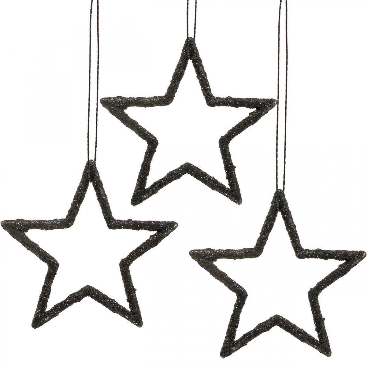 Produktname: Weihnachtsdeko Stern Anhänger Schwarz Glitter 7,5cm 40St