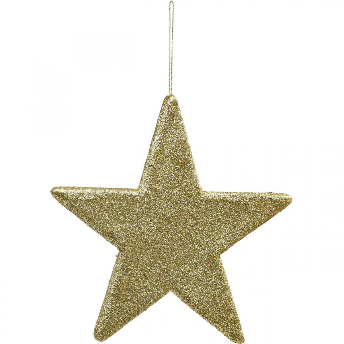 Stella da appendere Addobbo natalizio con glitter oro 30cm 2pz