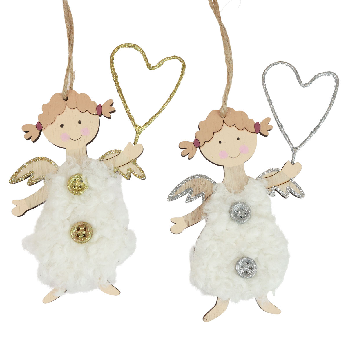 Angelo di Natale con cuore Decorazioni per albero di Natale in legno 14,5 cm 8 pz