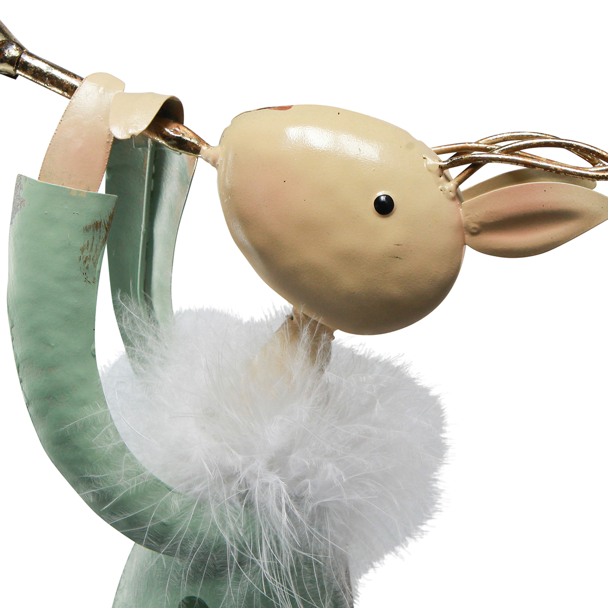 Figurine de Noël en métal avec trompette - décoration originale de cerf en vert et or