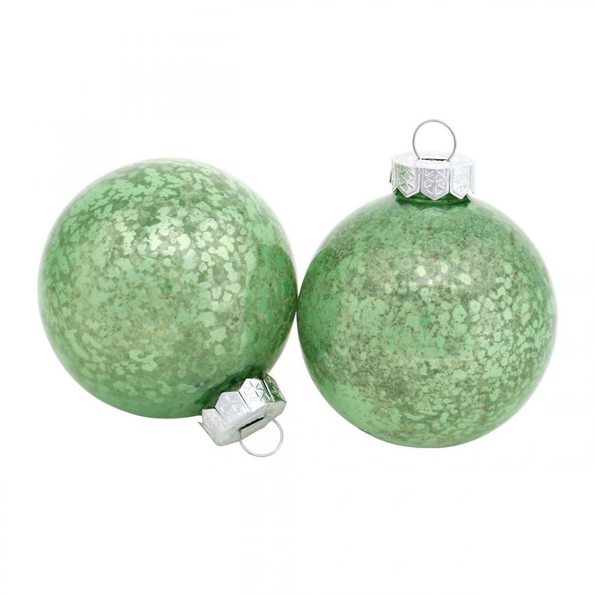 Boule de Noël, décoration sapin de Noël, boule en verre vert marbré H6,5cm Ø6cm verre véritable 24 pcs