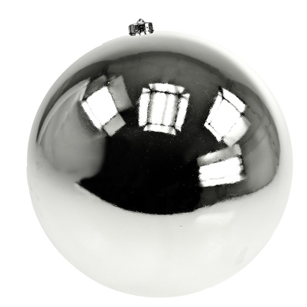 Cette grande boule de Noël en plastique suscitera l'admiration dans votre décoration festive ! La boule d’un ton argenté brillant reflète à merveille toute lumière et diffuse ainsi un sublime jeu de couleur aux alentours. Cet ornement pour sapin de Noël fera des merveilles, notamment mêlé aux nombreuses guirlandes lumineuses.Comme son nom l'indique, elle est idéale pour décorer des grands sapins à Noël à la fête de village, sur le marché et sur le site d'une entreprise. Vous pourrez suspendre cette décoration de Noël en toute tranquillité à l'extérieur car elle est résistante aux intempéries et au gel.
