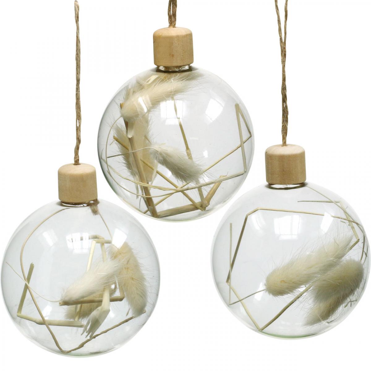 Boules de Noël boule de décoration en verre remplie de fleurs séchées Ø8cm 3pcs