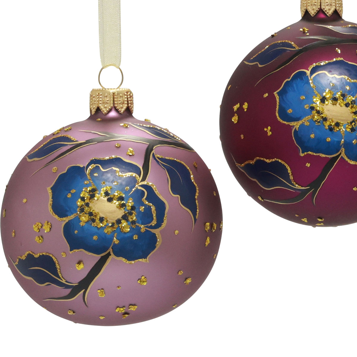 Boules de Noël en verre violet Boules de sapin de Noël fleur Ø8cm 6pcs