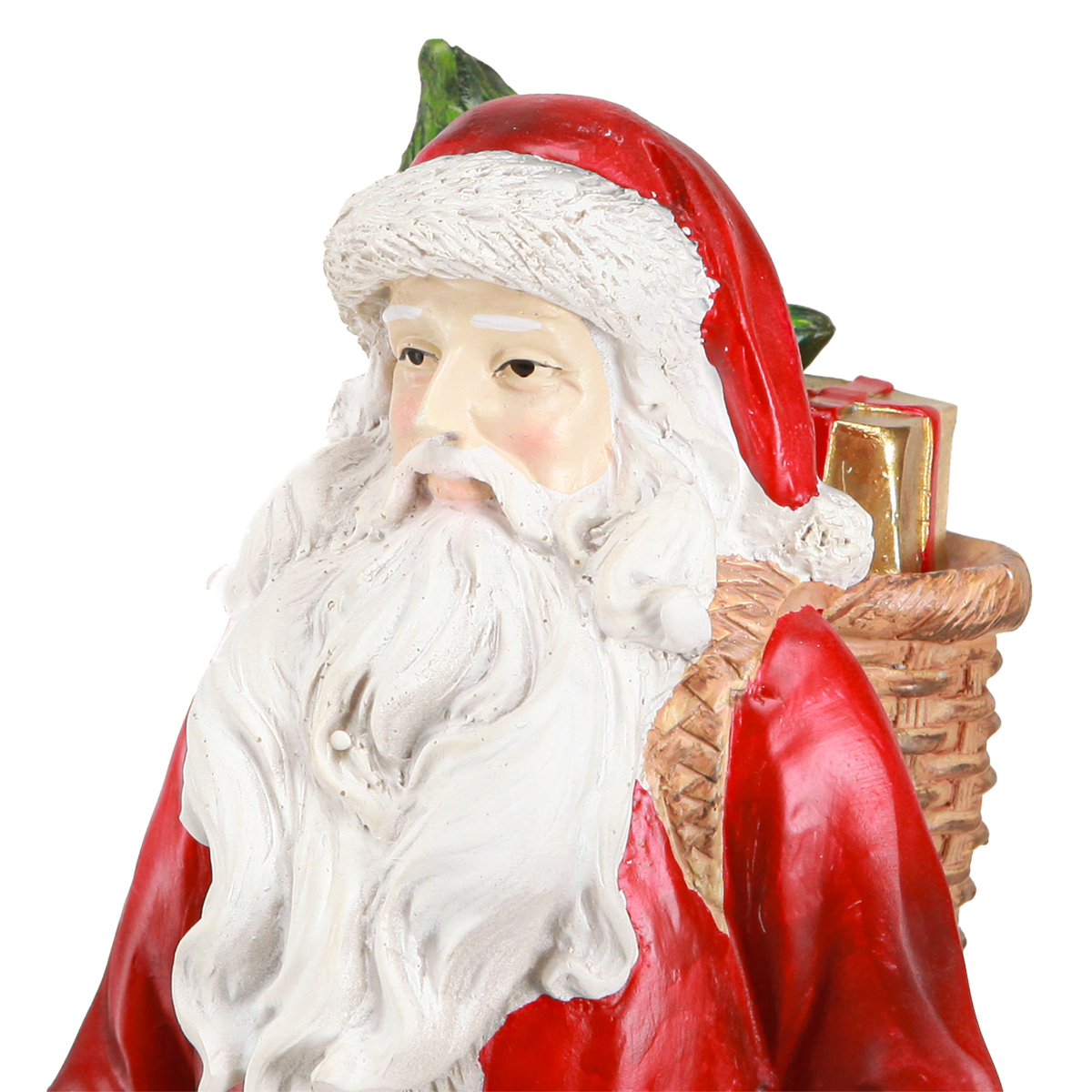 - Detailreiche Verarbeitung: lange weiße Bartsträhnen, festlicher Korb mit Tannenbaum und Geschenk
