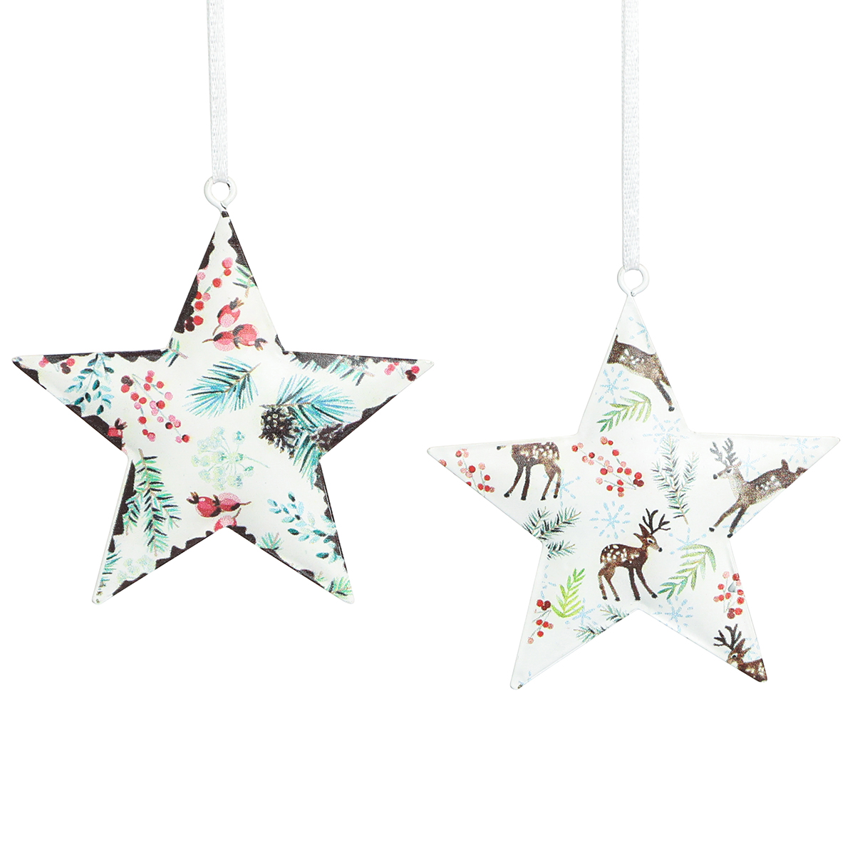 Unsere Sternanhänger aus Metall zeichnen sich durch eine sorgfältige Verarbeitung und detailreiche Gestaltung aus. Zwei unterschiedliche Varianten – mit grünen Nadelzweigen, Zapfen und roten Beeren oder mit einem edlen Hirsch-Motiv in Braun – sorgen dafür, dass für jeden Geschmack etwas dabei ist. Jede Packung beinhaltet 6 Anhänger, die mit einem weißen Band versehen sind, sodass sie überall leicht angebracht werden können.