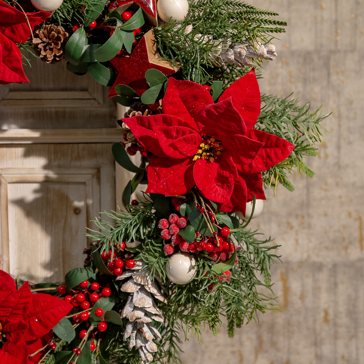 Sperimenta il caldo splendore delle nostre stelle di Natale artificiali, il cui aspetto realistico ti delizierà con il rosso vellutato e le foglie verdi delicate. Ogni stelo è rinforzato con un'anima in metallo che offre opzioni di decorazione flessibili. Dai a ogni stanza un tocco di classica eleganza natalizia con questi fiori artificiali, senza alcuna cura aggiuntiva.