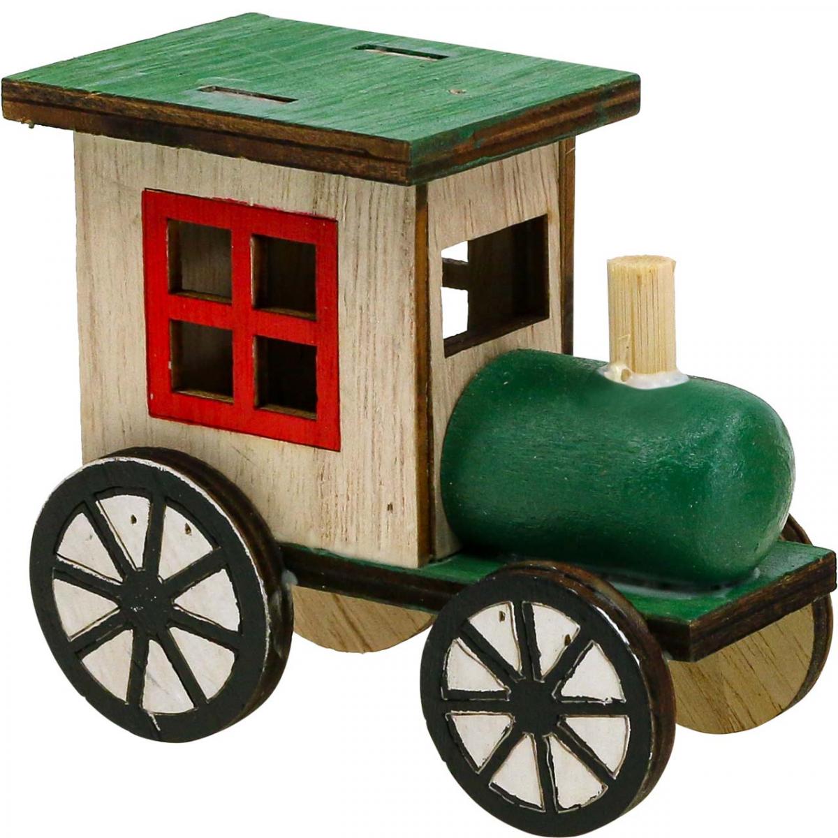 Decorazione ferroviaria del treno di Natale locomotiva in legno H7,5 cm 4 pezzi