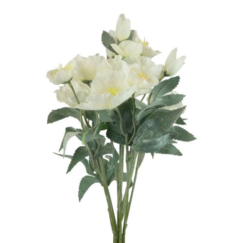 Die Stiele sind fest miteinander verbunden, sodass Sie hier einen fertigen Kunstblumenstrauß aus weißen Christrosen erhalten. Mittels des Drahtkerns lässt sich die Kunstblumen-Deko zurechtbiegen. Stellen Sie den Kunstblumenstrauß in eine Vase und erfreuen Sie sich am Zauber der Schneerosen-Schönheit.