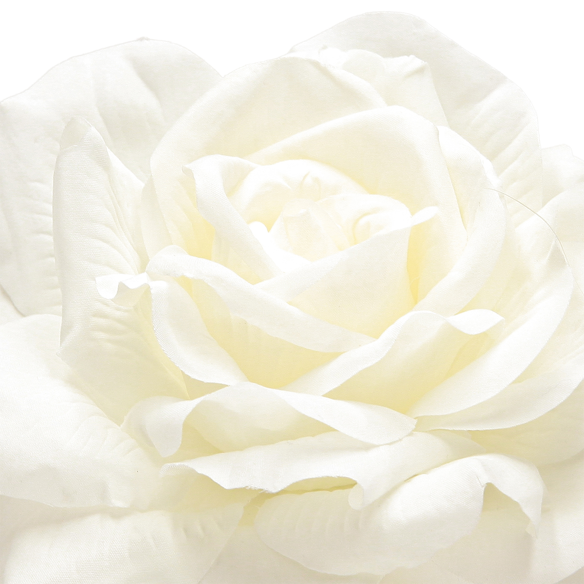 L'élégante rose artificielle en blanc a une longueur totale approximative d'environ 72 centimètres avec la tige. Le diamètre de la tête de rose dodue est d'environ 13 centimètres.