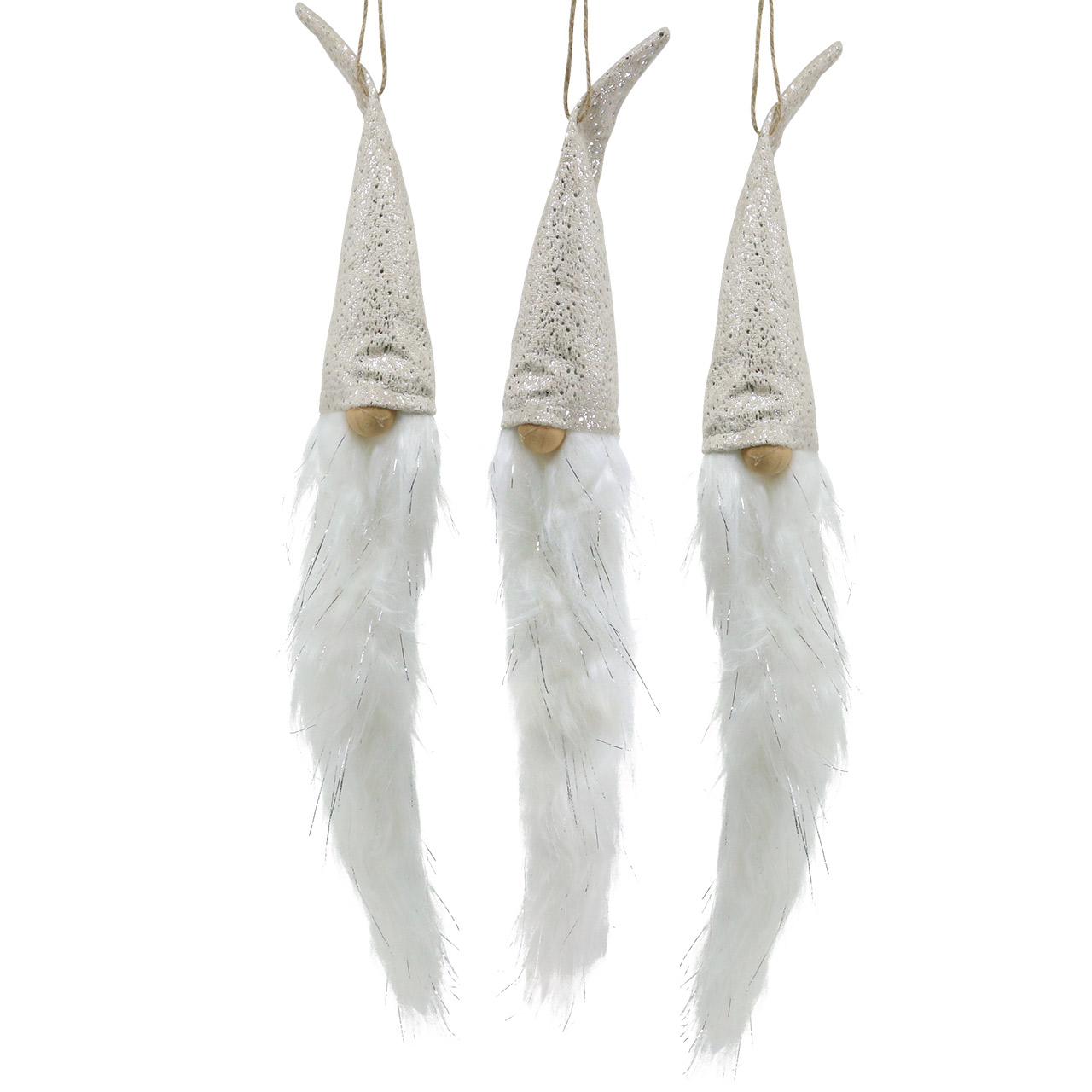 Gnome avec chapeau pointu à accrocher crème 48cm L57cm 3pcs