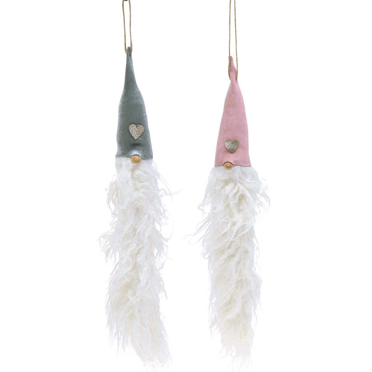 Testa di gnomo da appendere 45 cm rosa/grigio 2 pz