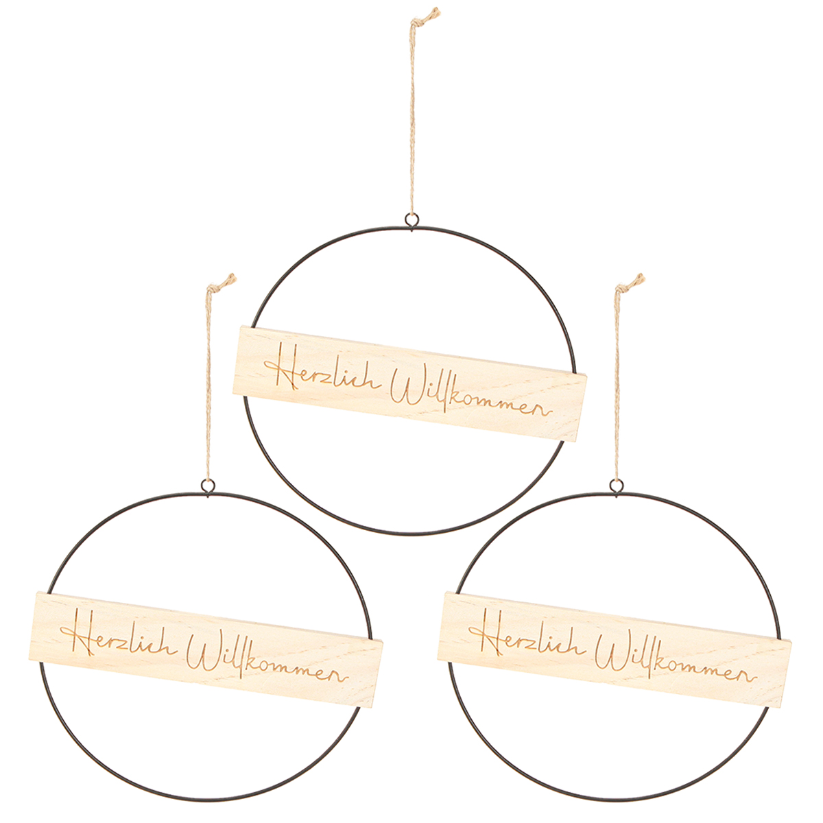 Willkommen Dekoring Metall Holz Schwarz Natur 23cm 3St