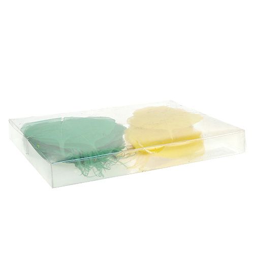 È possibile utilizzare i fogli decorativi in vari modi, come decorazioni sparse sul tavolo da pranzo durante una festa di compleanno e per creare lavoretti con palline o coni di polistirolo. Oppure puoi decorare composizioni floreali, ghirlande e altri elementi floreali con le bellissime foglie a velo.