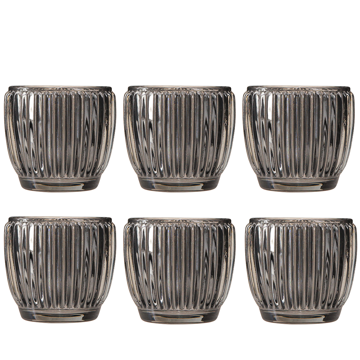 Windlicht aus Glas in Grau Herbst Winter Ø7cm H7cm 6 St