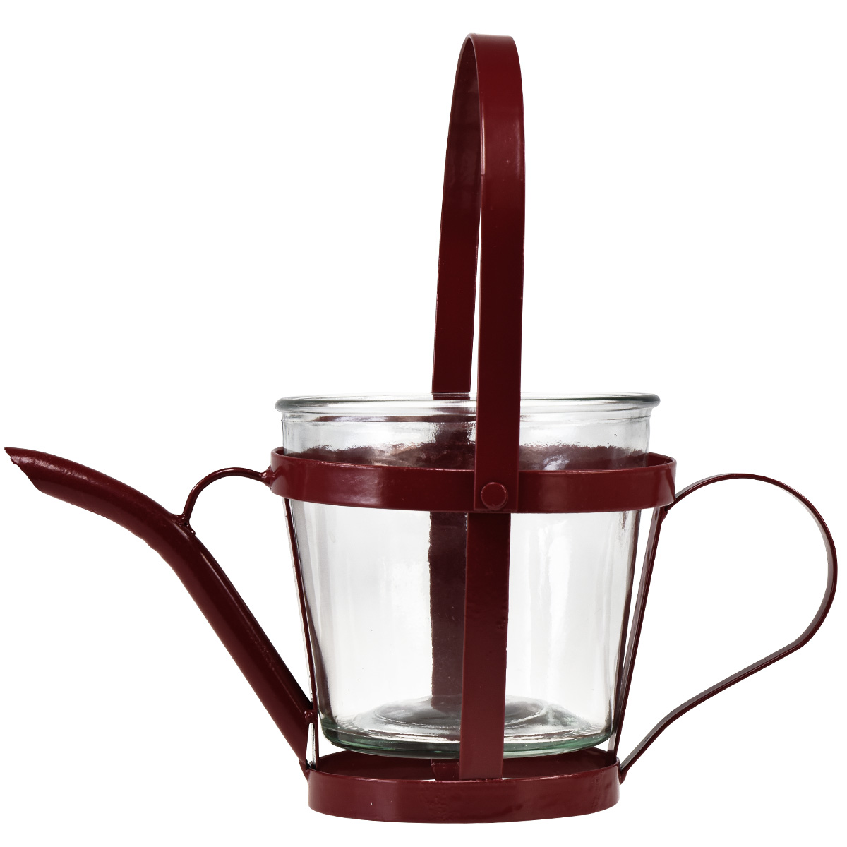 Windlicht Glas Deko Gießkanne Metall Rot Ø14cm H13cm